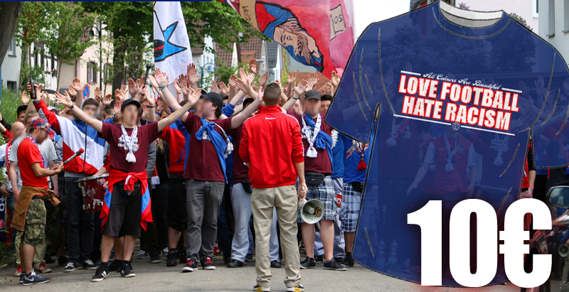 Neues Shirt – Love Football – Hate Racism Veröffentlicht am 24. Juli 2013 von niko Ab sofort könnt ihr euch das neue Shirt vorbestellen. Schickt uns einfach eine Mail mit Anzahl und Größe an info@fanatico-boys.de Bestellungen nehmen wir bis zum DFB-Pokal Spiel gegen 1860 München am Container oder per Mail entgegen. Kosten 10 €.